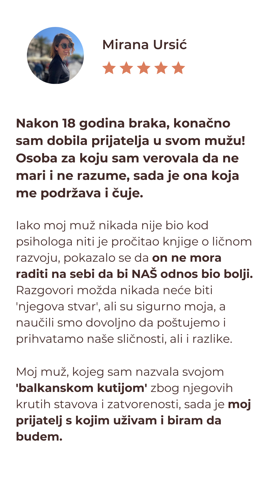Napomena: s obzirom da je najveći broj polaznika upravo žene - obraćam se u ženskom rodu i navodim primere iz te perspektive. Ukoliko ti je to u redu - ovo može da ti pomogne da još bolje razumeš svoju partnerku kroz te primere i unapredite odnos.